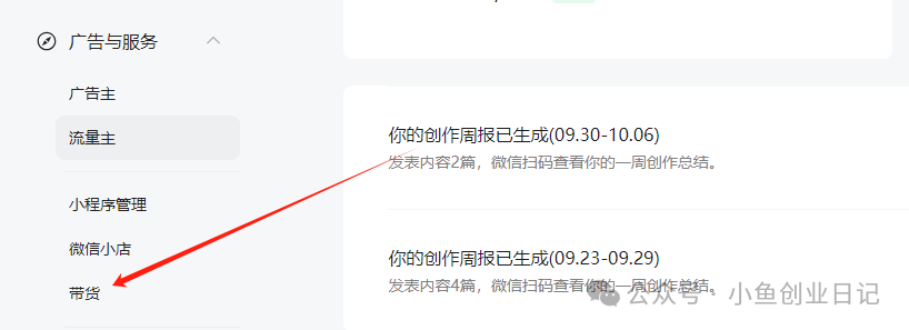 登录进公众号,左侧菜单栏选择“带货”,然后按照流程开通即可。