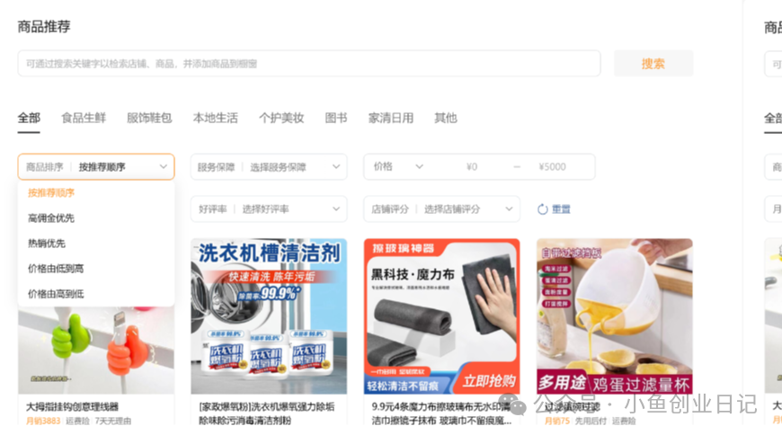 一般而言,选品需要遵循这几个原则,好评率高、支持七天无理由、销量高、佣金高、店铺评分高的商品往往会受欢迎。
