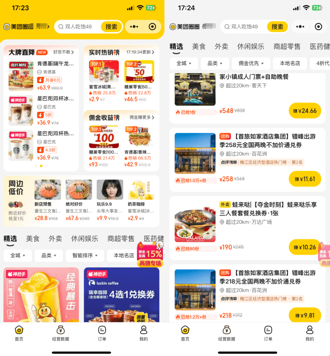 等你慢慢摸熟了,就能发现,其实这个市场远比想象中大,打开美团圈圈,每天刷一下热销榜单,看什么券在推,有返利、有热度,那基本就是个潜力爆款。
